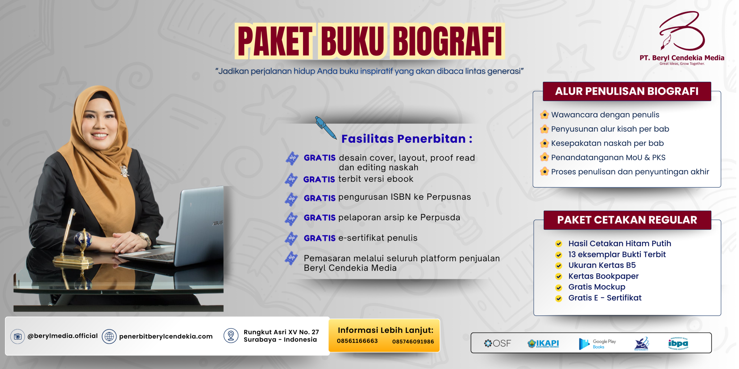 “Beryl Cendekia Media memiliki tim yang cepat tanggap dan berpengalaman. Setiap tahapan diterangkan dengan jelas, menjadikan proses penerbitan terasa ringan dan profesional.”